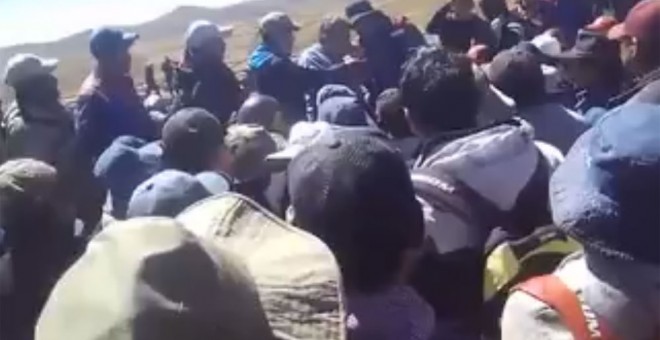 LA PAZ 30 agosto 2016.- El periodista boliviano Carlos Valverde publicó este martes en Twitter un vídeo que muestra al viceministro boliviano de Régimen Interior, Rodolfo Illanes, en manos de una muchedumbre, siendo amenazado de muerte y pidiendo ayuda por teléfono.