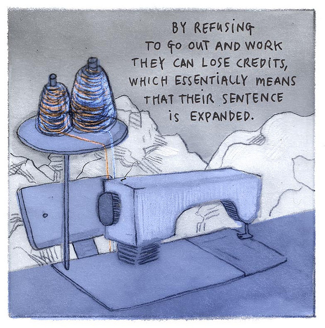 cobrando un dólar al día y restándoseles dos días de condena por cada día que acuden al trabajo.