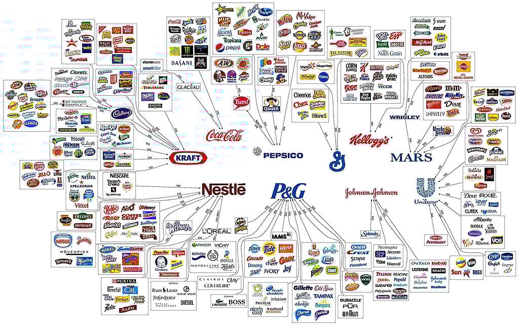7 nov. 2016 - La mayoría de las grandes marcas de alimentación, productos domésticos, cosmética y productos para los animales están controladas por tan solo 10 grandes corporaciones. Oxfam, una confederación internacional de ONGs, ha creado una infografía que demuestra el predominio de estas compañías en el mercado mundial y puntúa cada una de ellas en función de su respeto al medio ambiente o a los derechos de los trabajadores.