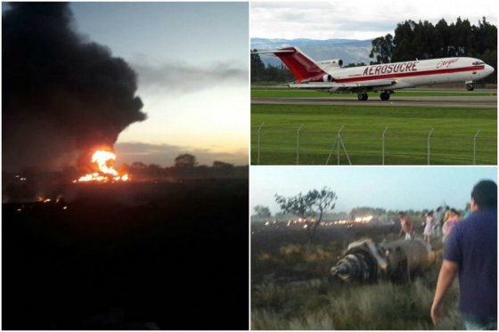 La aeronave accidentada es un Boeing 727 con matrícula HK4544, que tenía como destino Bogotá, con seis ocupantes a bordo, agrega el comunicado. Antes de caer, se alcanzó a soltar carga, que en su mayoría era pescado, informa 'El Tiempo'.