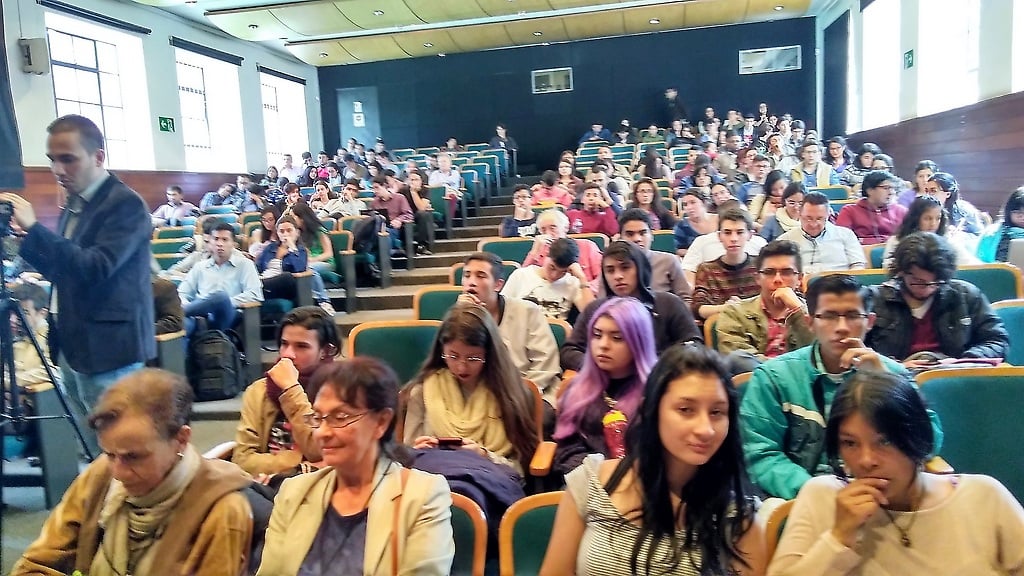 Parte del público asistente a los foros realizados con participación del CADTM en la Universidad de Bogota Credito: Aporrea.org |