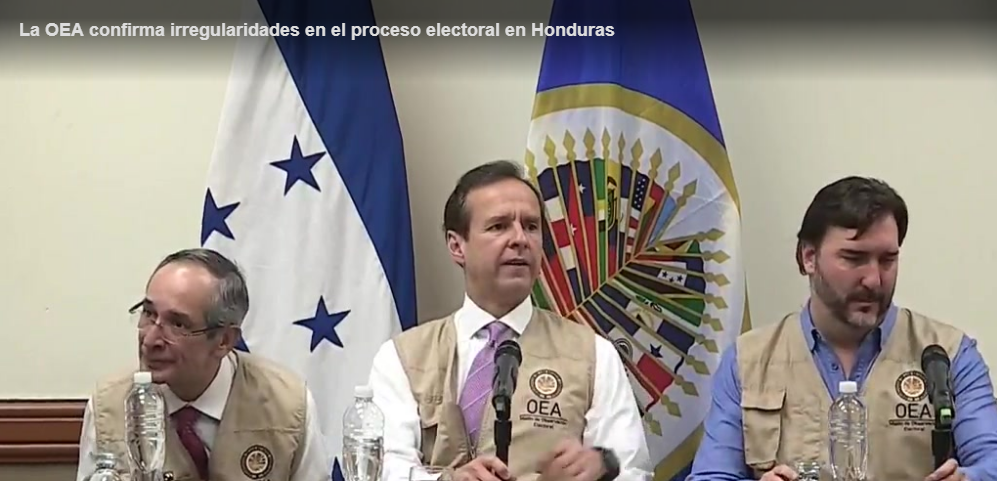 El comunicado llegó al filo de la medianoche de Washington, donde la OEA tiene su sede, después de que las autoridades electorales hondureñas proclamaran vencedor al conservador Juan Orlando Hernández, que buscaba la reelección, elevando las denuncias por fraude de la oposición y del otro candidato, Salvador Nasralla.