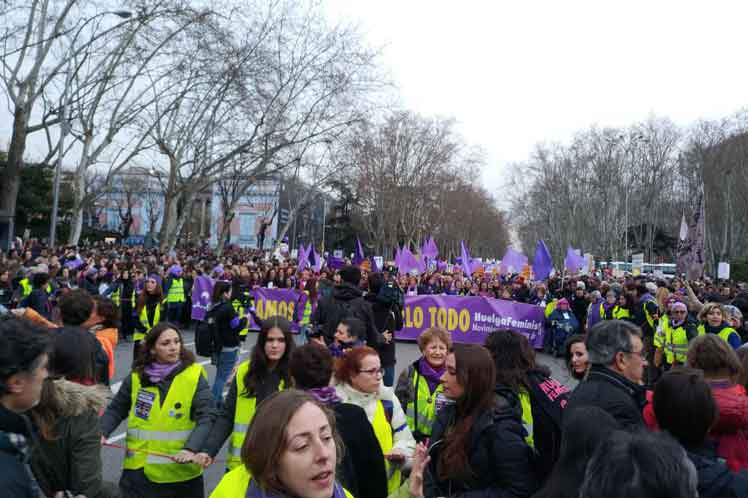 Las organizaciones sindicales calificaron este jueves de éxito rotundo las múltiples manifestaciones y la primera huelga general feminista en la historia de este país europeo, en defensa de sus derechos y contra el machismo.