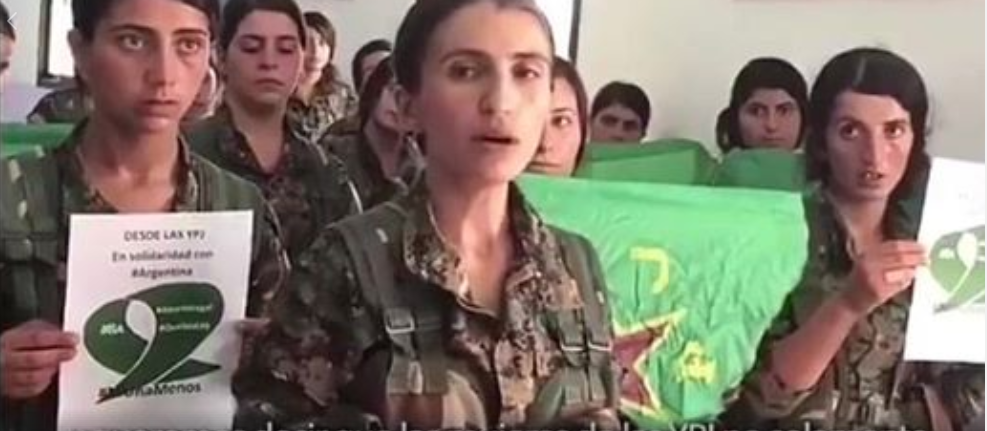 07/08.- Al grito de ¨Mujer, vida y libertad¨ las mujeres de las unidades de autodefensas femininas YPJ envian su saludo de solidaridad con el movimiento de mujeres argentino que mañana estará a la expectativa de la aprobación o no del proyecto por la interrupción voluntaria del embarazo que se discutará éste 08 de agosto en la Camara de senadores del congreso nacional.
