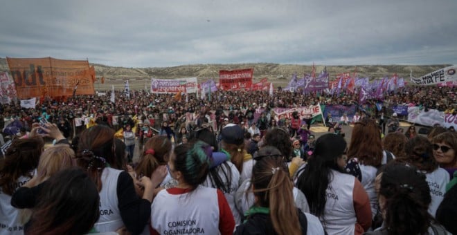 Han sido 10.000 personas menos que el encuentro celebrado en Chaco hace un año. 50.000 personas que han conseguido organizarse, según la Comisión organizadora, pese a las “presiones y amenazas por parte del Estado”. “Han hecho todo lo posible por que no se celebrara el encuentro este año”, asegura Miriam, una de las organizadoras. Varias asociaciones han denunciado registros exhaustivos a la entrada de la ciudad, cancelación del transporte entre provincias y cierres de lugares de alojamiento. Puerto Madryn, Rawson, Gaiman y Playa Unión son los pueblos cedidos como alojamiento solidario, pero se han anulado los autobuses interprovinciales.