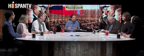 Los Invitados son: Manolo Monereo, de Podemos, Pablo Gentili, Secretario Ejecutivo de CLACSO, Ruth Ferrero, profesora de Ciencias Políticas de la UCM, Georgina Higueras, periodista, Marga Ferré de Izquierda Unida (IU) y Javier Morales, profesor de Relaciones Internacionales.