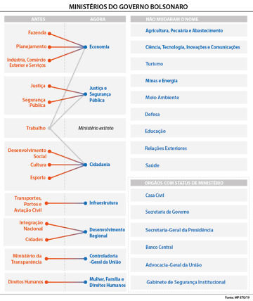 Las principales críticas al nuevo presidente de Brasil, Jair Bolsonaro, se han centrado en la designación de una conocida latifundista para organizar las tierras indígenas y la eliminación de las referencias a la comunidad LGBTI en el organigrama ministerial, pero la eliminación de importantes ministerios establecidos en gobiernos anteriores no es menos controversial. La Medida Provisional 870/19, publicada en una edición extraordinaria de la Gaceta Oficial brasileña pocas horas después de la toma de posesión, reduce de 29 a 22 el número de órganos con estatus ministerial en el gobierno federal.