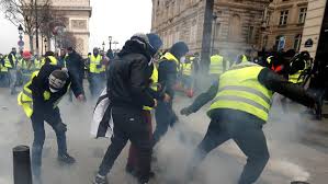 Miles de personas se reunieron en París para el “acto 10” de las protestas de los “Yellow Vest” (Chalecos Amarillos) que comenzaron el 17 de noviembre de 2018. Los vídeos muestran enfrentamientos entre manifestantes y la policía, que usó cañones de agua. El 15 de enero, Macron inició el “gran debate nacional” con una gira por Francia para escuchar las quejas de la gente; una iniciativa que los manifestantes ven como “inútil” y una “cortina de humo”.