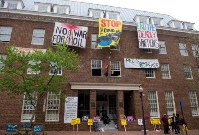 Ante las constantes agresiones de Washington contra el Gobierno y el pueblo venezolano, un grupo de activistas estadounidenses denominado Colectivo para la Protección de la Embajada (Embassy Protection Collective) vive desde hace semanas en la sede, con la anuencia del Estado.