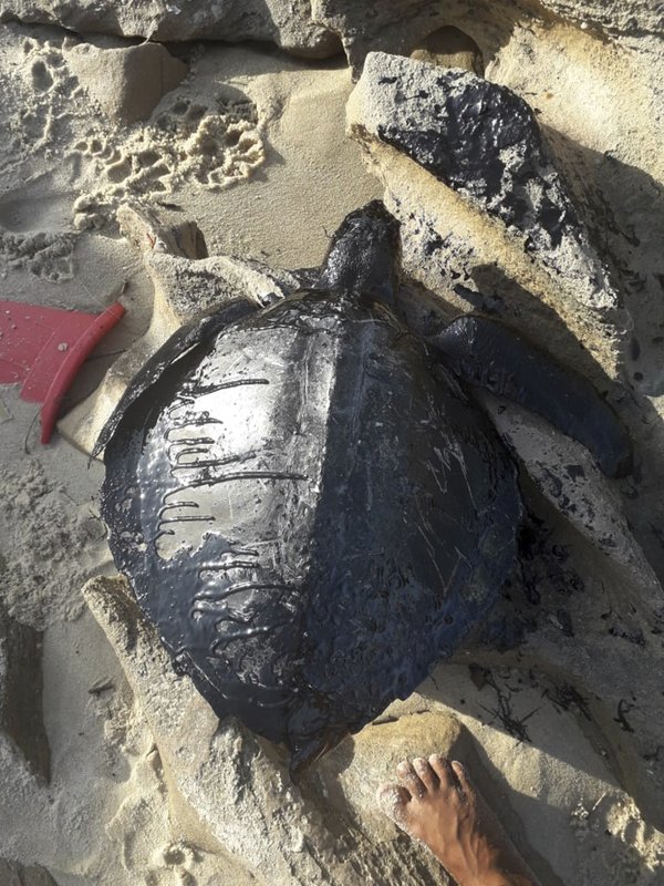 La policía brasileña investiga el origen del petróleo, que ha matado a por lo menos siete tortugas y obligado a nadadores y pescadores a mantenerse alejados de las zonas contaminadas.