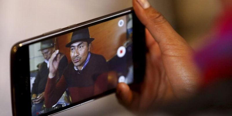15-10-19.-Es lunes y la muchedumbre se arremolina en Quito. Entre gritos de emoción tratan de tocarlo. Se oye la palabra “gracias” infinidad de veces mientras ecuatorianos emocionados persiguen al dirigente indígena Leonidas Iza entorpeciendo su paso, aunque un grupo de jóvenes custodios hacen lo posible por evitar que lo maltraten entre tantas muestras de afecto, reportó la agencia AP.