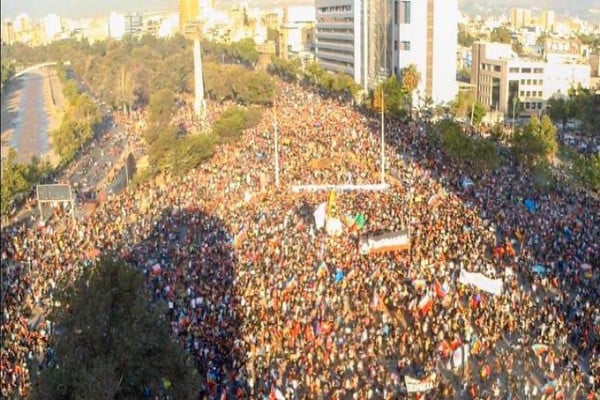 Las protestas obedecen al llamado de la Mesa de Unidad Social, que agrupa a casi 200 organizaciones, para mantener la movilización en rechazo al denominado Acuerdo por la Paz y una Nueva Constitución, firmado la semana anterior por los partidos de derecha y algunos de la oposición.