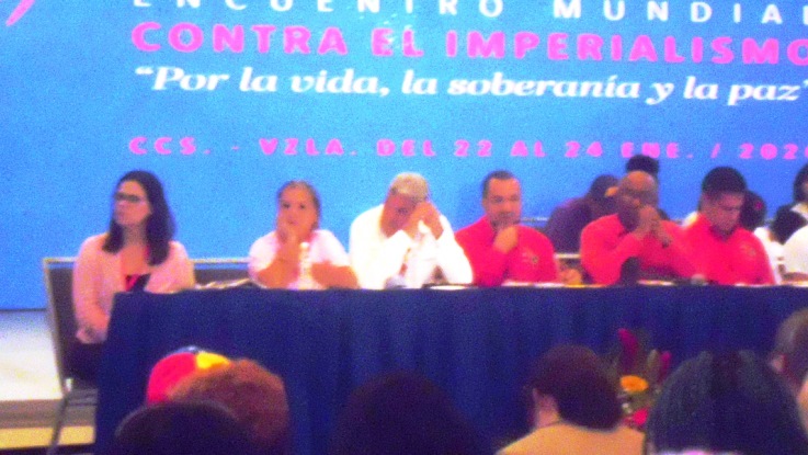Estamos muy agradecidos porque Venezuela nos invitó y obviamente estamos esperando que a futuro, de lo que salga de aquí, las conclusiones que se den mañana en este evento nos permitan reflexiones importantes que nos ayuden a que nos compenetremos y nos afiancemos para librar una batalla dura y contundente contra el imperio norteamericano, que nos ha venido asesinando, ha venido tumbando gobiernos, ha utilizado distintas maneras para tumbar gobiernos progresistas, gobiernos de izquierda porque ellos quieren imponer sus puntos de vista económicos y sus intereses comerciales.