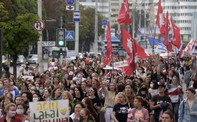 07-09-20.-Decenas de miles de personas volvieron a salir a la calle este domingo en distintas ciudades de Bielorrusia para exigir la renuncia del dictador, Alexandre Lukashenko, en el marco de las mayores protestas postelectorales en la historia de esa república exsoviética.