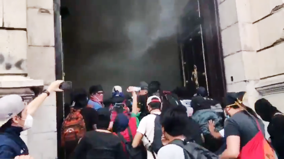 Cientos de manifestantes tomaron este sábado el Congreso de Guatemala y le echaron fuego: ingresaron al edificio del parlamento donde no había diputados presentes, en medio de la indignación quemaron cortinas y rompieron vidrios de algunas ventanas. Posteriormente cientos de manifestantes ingresaron al Parlamento gritando consignas contra la Corrupción y por el recorte presupuestario dirigidos a combatir el #Covid 19