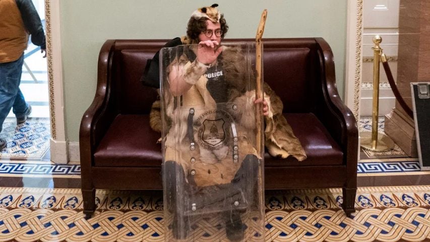 El hombre fue fotografiado dentro del Capitolio durante el asalto del pasado miércoles, vistiendo pieles, un chaleco antibalas de la Policía y portando un escudo de los antidisturbios y sus imágenes fueron algunas de las más publicadas por los medios durante el episodio.