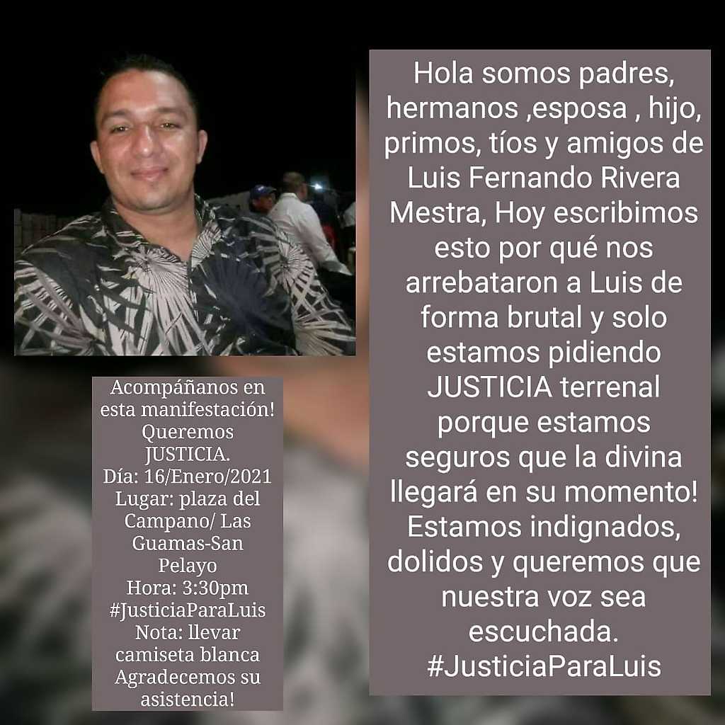 Arguyen habitantes de Las Guamas que no se puede ver el asesinato de Luis Fernando Rivera Mestra de manera aislada de las condiciones represivas que impone un régimen como el que impera en Colombia: antiobrero, antipopular y profundamente criminalizador de la pobreza, lo cual queda retratado en el hecho de que Rivera Mestra era un trabajador y su asesino un oficial militar, que se siente con la prerrogativa de accionar su arma contra un civil pues presumiblemente será respaldado por los organismos que corresponde.