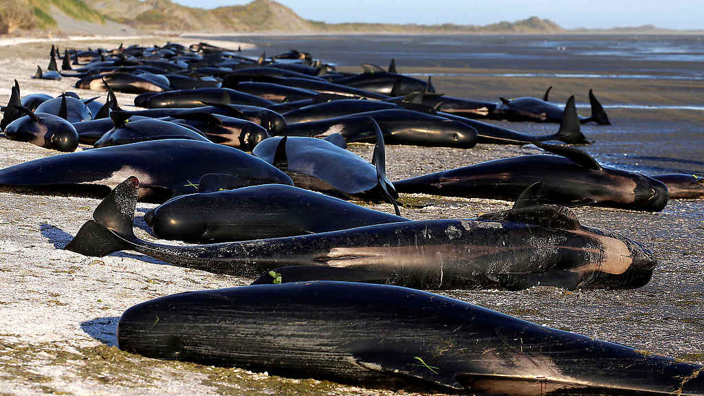 Farewell Spit, una lengua de arena que se arquea hacia el Mar de Tasmania, ha registrado otros varamientos masivos en el pasado. Los cetáceos parecen tener problemas para alejarse de la playa una vez se se acercan a larga línea de costa, descrita en ocasiones como una trampa para ballenas.