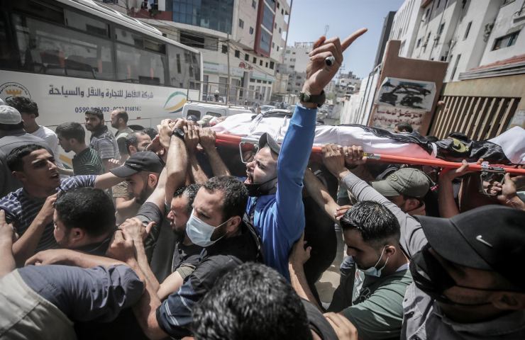 11-05-21.-Los 26 palestinos que murieron en la actual escalada de violencia con Israel fueron enterrados en la Franja de Gaza, donde algunos edificios quedaron hoy reducidos a escombros tras casi 24 horas de intercambio de fuego entre las milicias del enclave y el Ejército israelí.