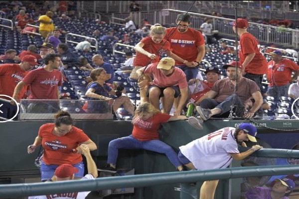 Los Nacionales anunciaron después que se había presentado un incidente fuera del parque. Publicaron en la pantalla electrónica un mensaje que pedía a los espectadores permanecer en el interior.