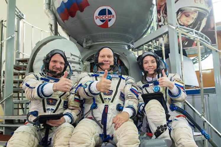 5 de octubre de 2021.- Rusia envió al cosmos el primer equipo de cine de la historia que filmará durante 12 días una película fuera de la atmósfera terrestre, que tendrá como base la Estación Espacial Internacional (EEI).