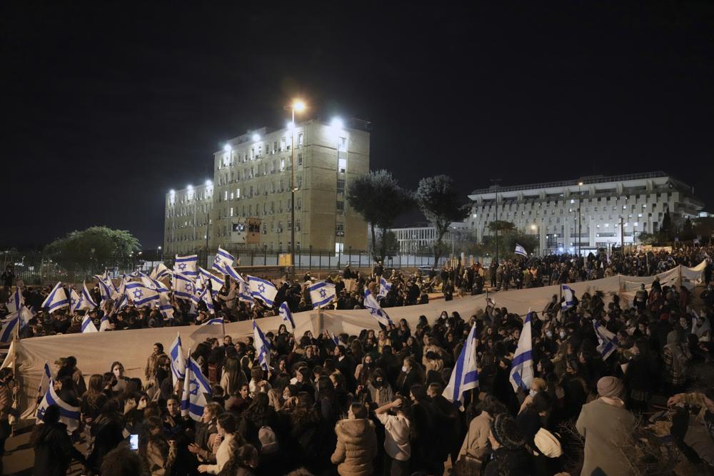 14 de Enero - Miles de nacionalistas israelíes realizaron el jueves una protesta frente al edificio del Parlamento en Jerusalén para instar al gobierno a que no demuela un asentamiento judío en Cisjordania.