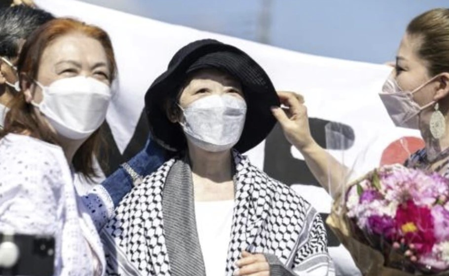 Dejó la prisión en Tokio en un automóvil negro con su hija mientras varios simpatizantes desplegaron una pancarta que decía "Te amamos Fusako".
