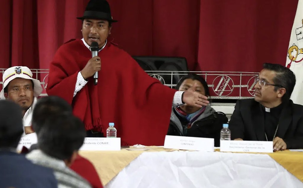 También estuvieron los presidentes de la Confederación Nacional de Organizaciones Campesinas, Indígenas y Negras (Fenocin), Gary Espinoza, y del Consejo de Pueblos y Organizaciones Indígenas Evangélicos del Ecuador (Feine), Eustaquio Toala.