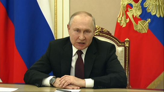 "Llamamos al régimen de Kiev a cesar de inmediato el fuego, poner fin a las acciones militares, a la guerra que desencadenó en 2014 y volver la mesa de negociaciones", dijo Putin.