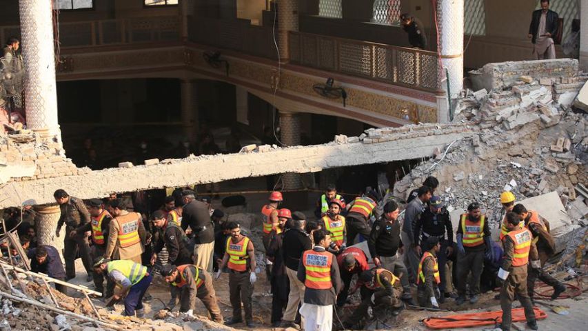 El atentado ocurrió hacia el mediodía en una mezquita en Police Lines, un centro residencial y de entrenamiento para policías, lo que explica el alto número de víctimas dentro de este cuerpo.