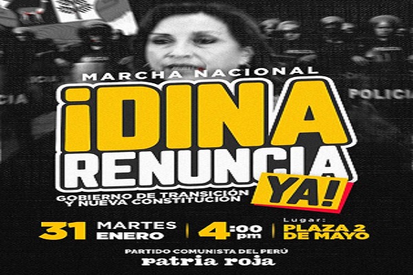 Centrales sindicales, organizaciones sociales y partidos progresistas de Perú, convocaron para este martes a una marcha nacional para demandar la renuncia de la presidenta designada Dina Boluarte, la celebración de elecciones anticipadas y la disolución del Congreso.