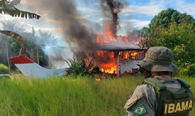 Un helicóptero, un avión, una excavadora y estructuras de apoyo logístico para la minería ilegal fueron destruidos en una operación contra la actividad ilícita por agentes ambientales del Gobierno de Brasil.