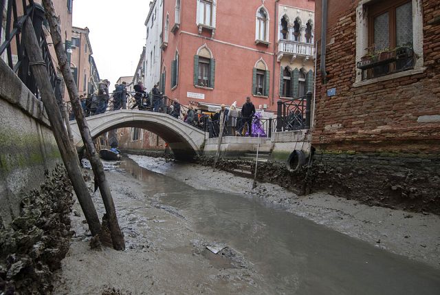 Según Alvise Papa, del centro de previsión de mareas de Venecia, "alrededor del 70% de los fenómenos de marea baja se producen durante este periodo, de enero a febrero, pero este año la falta de precipitaciones condujo a este resultado.