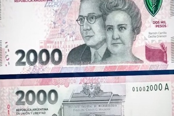El Banco Central de Argentina (BCRA) puso este lunes en circulación el nuevo billete de 2.000 pesos (8,2 dólares/7,5 euros) de curso legal ante la necesidad de papel moneda de mayor denominación debido a la aceleración de la inflación, por encima del 100% anual.
