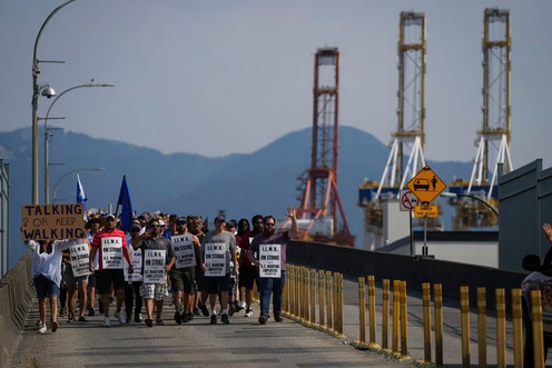 8 de julio de 2023.- Desde el sábado pasado, unos 7.400 trabajadores -estibadores en su mayoría- están en huelga en 30 puertos de la provincia canadiense de Columbia Británica. El paro afecta especialmente a las terminales portuarias de Vancouver y de Prince Rupert, la primera y la tercera en importancia en este país norteamericano. Las negociaciones se encuentran en punto muerto y, dados los impactos en el comercio, diversas voces solicitan una ley especial para terminar con el conflicto.