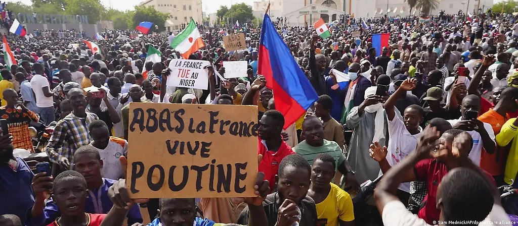 "¡Viva Putin!", "¡Viva Rusia!", "¡Abajo Francia!", gritaron los manifestantes, antes de ser dispersados por gases lacrimógenos. Los participantes ondean banderas nigerinas junto a banderas rusas y corean lemas como "¡Abajo Francia, fuera Barkhane, nos dan igual la CEDEAO, la Unión Europea y la Unión Africana!".