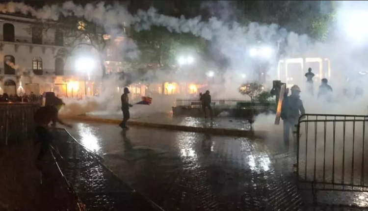 Según lo que constató el equipo de TVN Noticias, la sede del PRD estaba completamente custodiada por miembros del control de multitudes que seguían lanzando gases a los jóvenes.