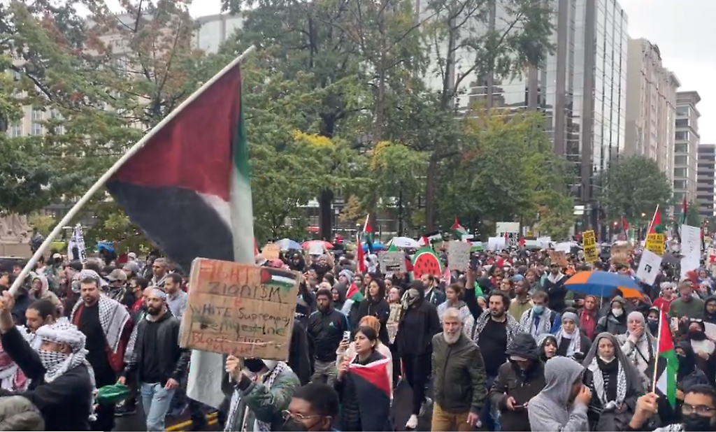 Cientos de miles, en distintas ciudades de Estados Unidos y esta vez, ocupando las principales arterias de la capital estadounidense. Marchando al unísono, expresando su rechazo ante el genocidio sionista.