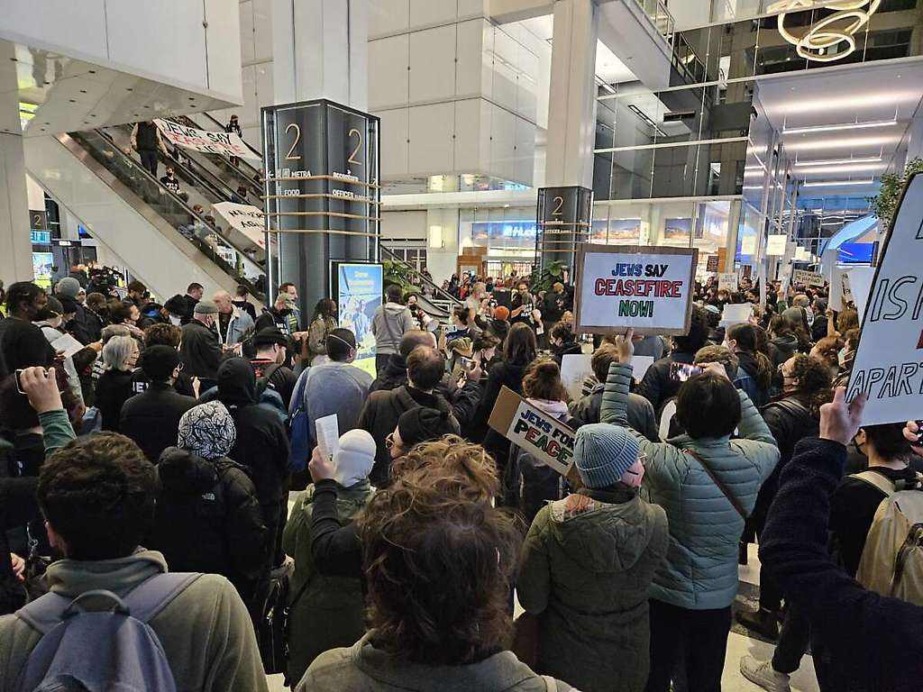 La acción, organizada por Jewish Voice for Peace, IfNotNow, Never Again Action y otros, comenzó alrededor de las 9 am, hora central. Más de mil manifestantes de varios estados del área de Chicago y más allá participaron en la acción, interrumpiendo los planes de transporte para los viajeros en la estación y perturbando los negocios en las cercanas oficinas del consulado israelí, que se encuentran en el mismo edificio que el Centro de Transporte Ogilvie.