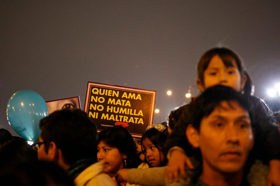 "Quien ama no mata, no humilla ni maltrata", resalta un cartel durante una movilización contra la violencia hacia las mujeres en Lima, la capital de Perú, que forma parte de una consigna que se repite en las manifestaciones contra los feminicidios y otras formas de violencia machista en América Latina
