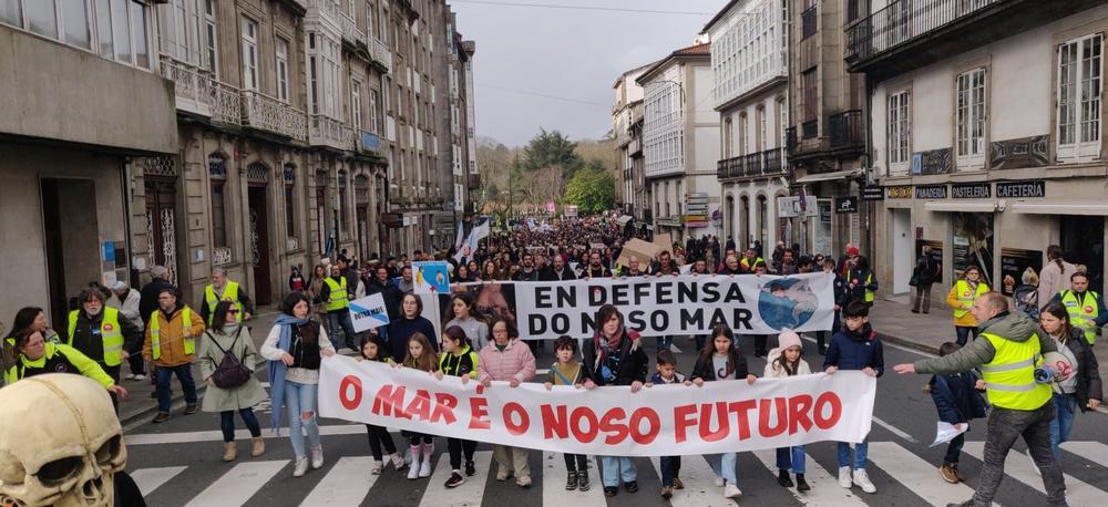 La convocatoria ha nacido de más de un centenar de grupos ecologistas y de asociaciones vinculadas a los sectores productivos de las rías gallegas, quienes se han unido para mostrar su descontento en una manifestación multitudinaria. La marcha partió de la Alameda compostelana poco antes de las 12.30h, atravesando las calles del centro de la capital gallega hasta su destino final en la Praza do Obradoiro, donde el colapso era tal que muchos manifestantes ni siquiera pudieron entrar.
