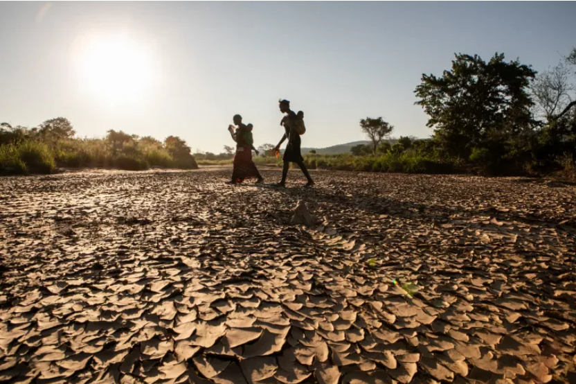 Campesinos en Zimbabue caminan sobre sus tierras resecas por el calor excesivo