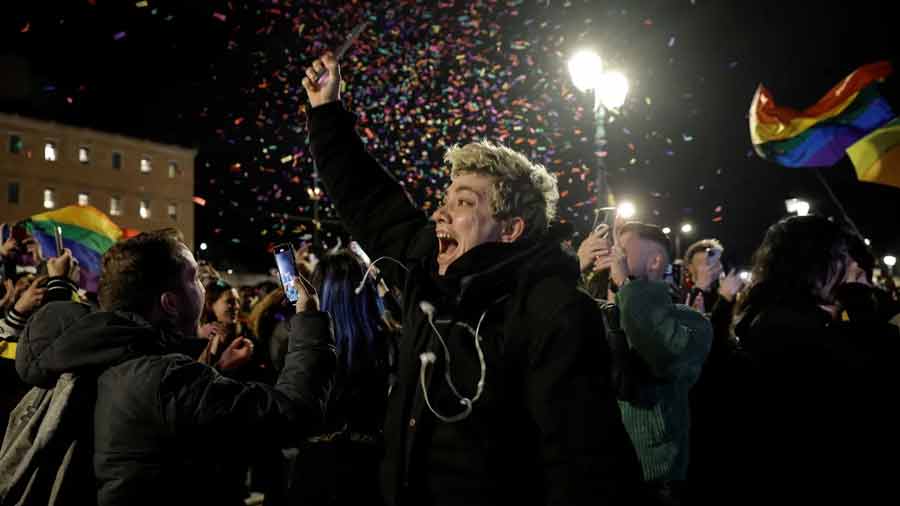 16 de febrero de 2024.- El Parlamento de Grecia aprobó por un amplio margen un proyecto de ley sobre el matrimonio igualitario que permite a las personas del mismo sexo casarse por lo civil, informan medios locales.