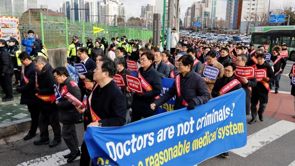 Los médicos jóvenes de Corea del Sur protestan contra el plan del gobierno de aumentar en un 65% el número de admitidos en la facultad de medicina a partir del año que viene, es decir, unas 2.000 personas al año. Esta medida se considera esencial para hacer frente a la escasez de personal sanitario y al envejecimiento de la población en Corea del Sur. Los médicos, por su parte, se oponen ferozmente al plan, pues consideran que la admisión de más estudiantes en las facultades de medicina se traducirá en un nivel inferior de los futuros diplomados, y que la calidad de la asistencia médica se resentirá en consecuencia. Pero los partidarios de la reforma les acusan de estar preocupados sobre todo por que sus ingresos disminuyan y su estatus social se deteriore si aumenta la competencia.
