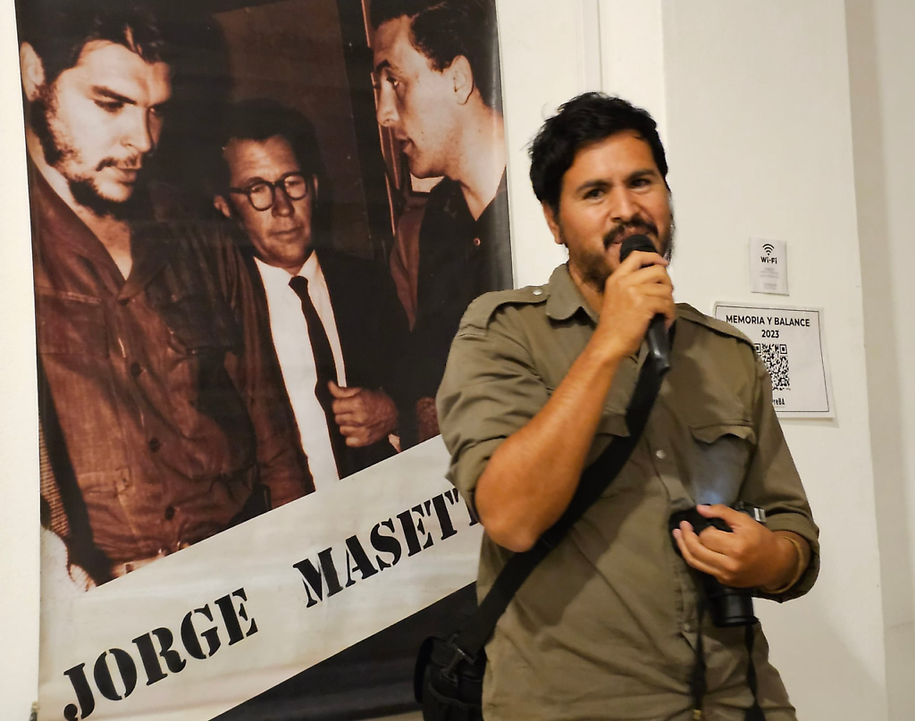 26 de abril de 2024.- En un necesario y emotivo acto, en consonancia con la memoria de lucha de nuestro pueblo, se recordó al fundador de la agencia cubana Prensa Latina, fraterno colaborador del Che y comandante guerrillero en Salta, Jorge Ricardo Masetti. La cita se dio en el Sindicato de Prensa de Buenos Aires (SIPREBA) y entre el público asistente se destacó la presencia de Graciela, hija de Masetti y una de las organizadoras del evento, junto con el gremio anfitrión, Resumen Latinoamericano y Venceremos, También, se hizo presente el hermano del Che, Martín Guevara.