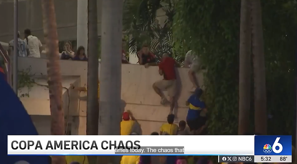 16 de julio de 2024.-Cuando los fanáticos corrieron hacia las puertas de entrada antes del inicio, los videos muestran que muchos fanáticos sin boletos lograron entrar, informó la filial nbcmiami.com.