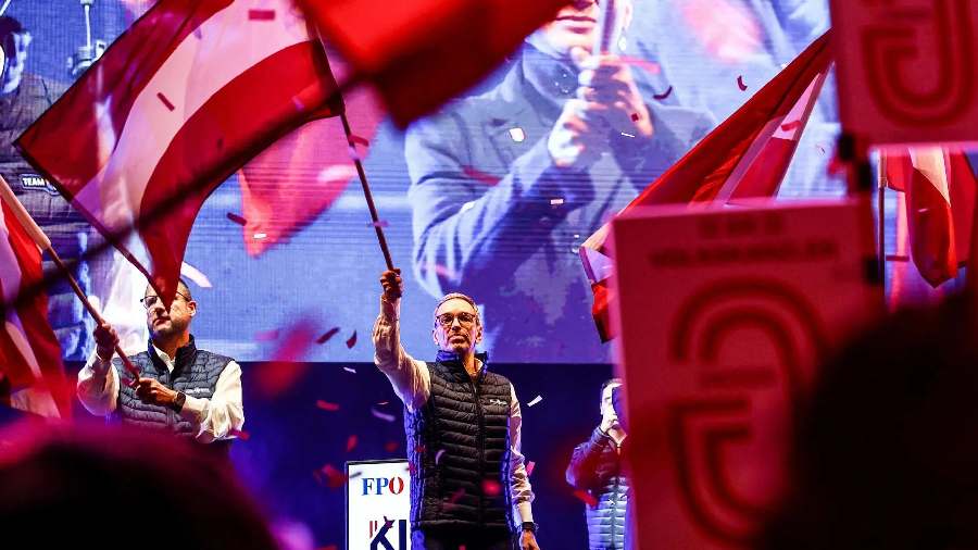 29 de septiembre de 2024.- El partido ultranacionalista FPÖ ha ganado este domingo por primera vez las elecciones parlamentarias en Austria, al lograr el 29,1% de los votos, según las primeras proyecciones basadas en voto real, que les sitúan incluso por delante del conservador ÖVP, que ha obtenido el 26,2%.
