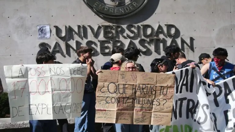 De acuerdo con los organizadores de la protesta de este jueves, las distintas federaciones de estudiantes de universidades públicas marchan hasta una de las sedes -Los Leones- de esta universidad privada, en cuya nómina se encuentran prácticamente todos los expolíticos que desempeñaron cargos de autoridad durante el Gobierno de Sebastián Piñera.