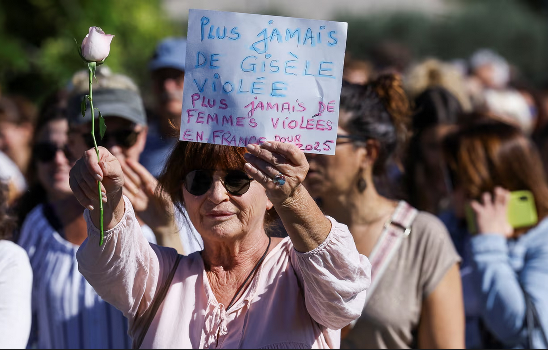 Una mujer que participó en la marcha dijo a los periodistas franceses: “Estoy allí como mujer, madre y abuela… Estoy aquí, en primer lugar, para apoyar a Gisèle, que es realmente muy valiente, y a otras mujeres y niñas”.