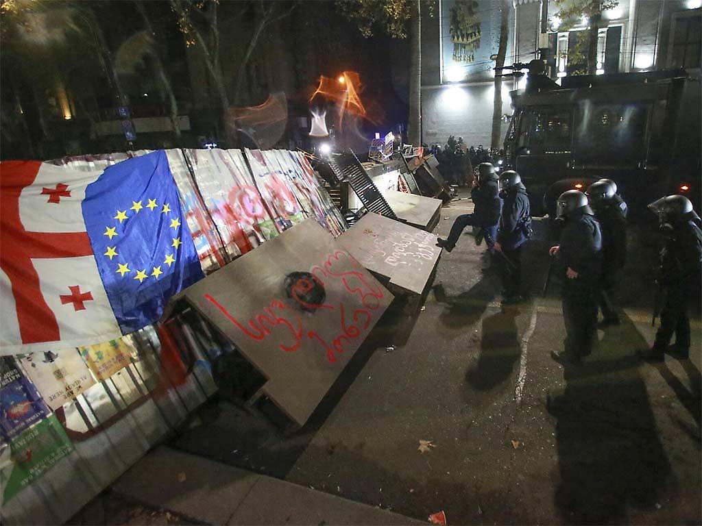 La presidenta del país, Salomé Zurabishvili, se unió anoche a los manifestantes que atacaron a los policías con objetos contundentes.